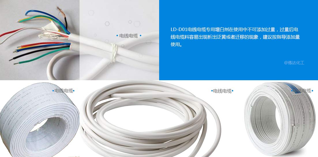 注意事項LD-D01電線電纜專用增白劑在使用中不可添加過量,過量后電線電纜料容易出現析出泛黃或者遷移的現象,建議按指導添加量使用。如您有任何技術或使用問題,請與我公司聯系。對我公司供應的產品,有責任進行試驗,以驗證是否適合所擬訂的工藝和用途;