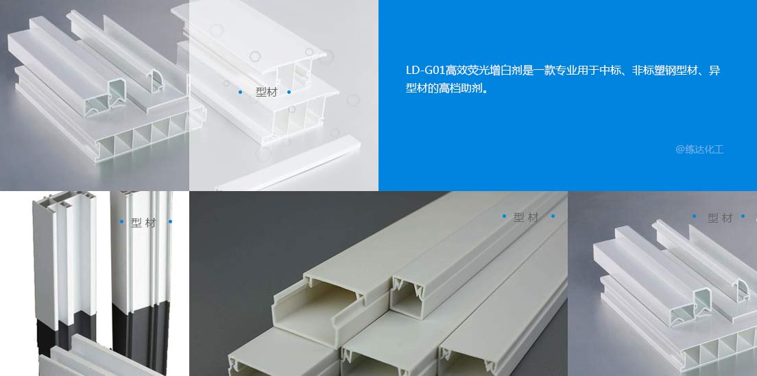 使用范圍廣LD-G01熒光增白劑是一款用于中標、非標塑鋼型材、異型材的高檔助劑。03